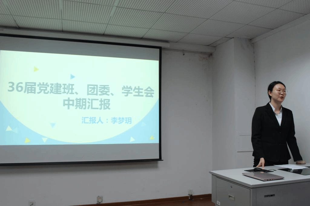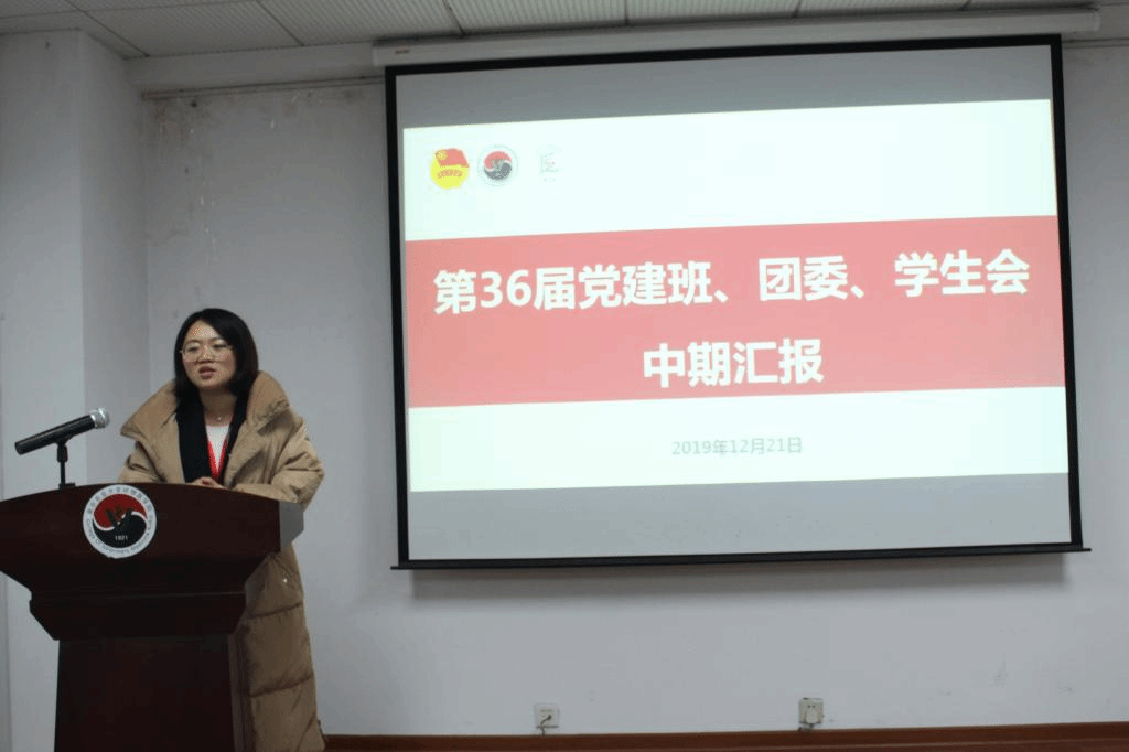 12月21日晚6点,beat365唯一官方网站第36届党建班、团委、学生会中期考核汇报于逸夫楼3044举行。辅导员金洁南、徐刚、李欣欣,及党建班、团委、学生会部长团成员出席了会议。大会由学生会主席李梦玥主持。