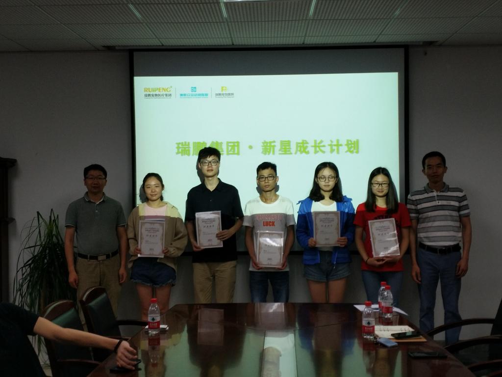 “瑞鹏班”是一个beat365官网与瑞鹏宠物医疗集团联合创办的旨在培养宠物行业高素质人才的培训班,此次开班的17级“瑞鹏班”是第二期培训班。本次活动除了进行第二期的开班仪式,也是第一期的结业仪式,16级“瑞鹏班”的同学们被授予了“瑞鹏班”结业证书。在开办仪式上,梁意总经理就瑞鹏集团的发展进程及人才培养方式做了详细的介绍,熊富强老师也就beat365官网优秀的人才培养平台展开介绍。此外beat365官网辅导员徐刚老师被聘为17级“瑞鹏班”的班主任。
