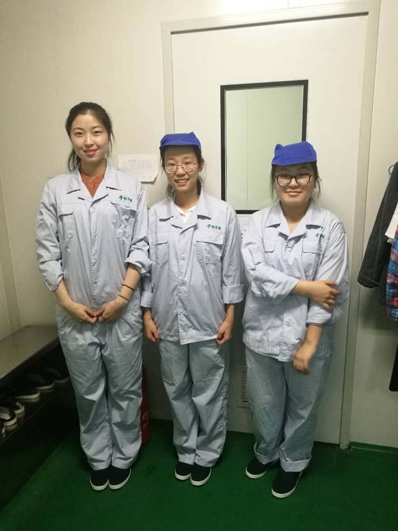 实践团成员在恒丰强公司安排下进行了为期一天的实习生入职岗前培训,在对公司的基本运作流程、公司的发展历程与企业文化、企业现状以及相关专业知识等有了一定的了解之后,前往五个场所进行实习,主要包括一车间、二车间、四车间、QC部门以及行政部门。一车间成员主要负责将粉包装袋、真空密封送入冷库。二车间成员主要负责进行洗瓶移瓶、纯水洗涤、微波洗涤、高压干燥以及烘箱烘干,同时将盒子叠好进入下一个车间。四车间负责贴标签、贴胶带、擦洗袋子、清洗车间以及包装等一系列基本操作。QC部门主要工作是协助公司人员对每一种产品进行检验,检验该产品是否符合国家规定的标准,以及是否符合该产品应有的质量标准。行政部门成员协助公司职员对仓库所有产品进行整理与数目清点。同时每过几天,不同岗位的成员会进行轮岗以熟悉整个工艺流程。