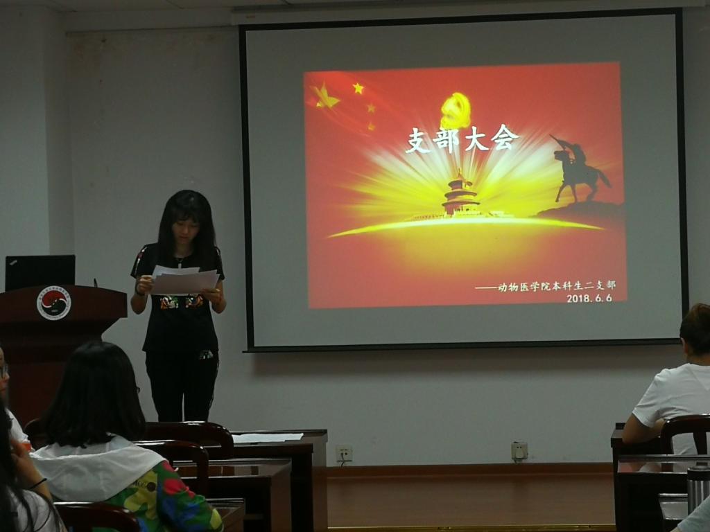 6月6日下午18点,beat365唯一官方网站本二支部拟发展及转正支部大会在逸夫楼3044顺利举行。动医院党本二支部书记臧铭慧老师及大一到大五所有本科生二支部学生党员出席大会。