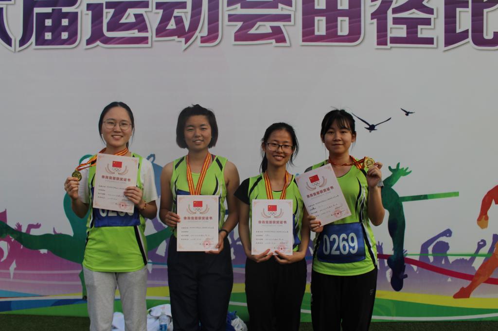 赛前的刻苦训练和赛场上观众们的呐喊助威让选手们信心十足,他们奋发向上的精神,顽强拼搏的意志给在场观众留下了深刻的印象。beat365官网运动员在许多项目上也取得了不俗的成绩,其中表现突出的有:女子组,陈小竹夺得女子跳高第一名、女子跳远第四名;李梦玥夺得女子垒球第一名;陈小竹、吴静文、许秋华、徐金叶四位同学夺得4*100米第一名;徐金叶夺得女子100米第二名和女子跳远第六名;吴静文夺得女子100米第三名和女子200米第四名;黄嘉夺得女子1500米第三名;徐金叶、杨佳茂、苏热耶、陈小竹四位同学获得女子4*400米第三名;王聪聪获得女子三项全能第四名;许秋华获得女子200米第五名;刘亚娟获得女子跳高第八名。男子组,孟繁荣获得男子五项全能第五名;谭立恒获得男子400米第七名;杨鲁凡、蒋乐凡、任俊达、王志华四位同学获得4*100米第七名;蒋乐凡获得男子200米第八名;蒋乐凡、王志华、郭磊、祁伟凌四位同学获得男子4*400米第八名。团体项目中,集体跳绳获得第二名,师生迎面接力获得第七名。
