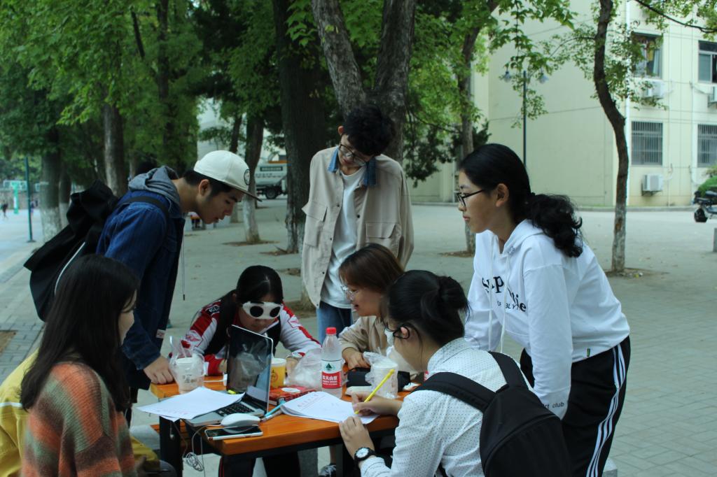 新生们集合分组后在各自组长的带领下,在校园内各处考验着小组成员们的默契,大家在篮球场上挥汗如雨,在校园生活小知识考验中绞尽脑汁。各组之间的气氛紧张热烈起来。
