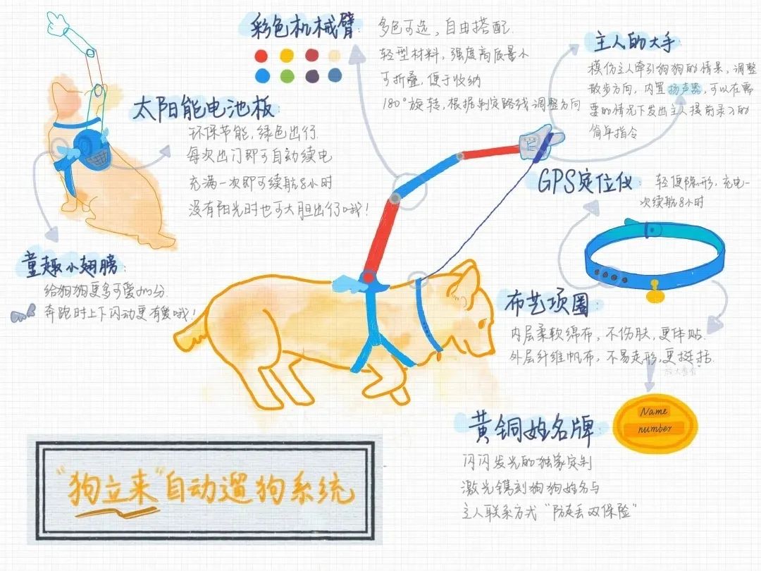 首先展示的是起名好难队,他们的作品是“狗立来”自动遛狗系统,具有“一键回家”、“即时语音”功能,并形成狗狗运动月度报告,为爱犬的健康保驾护航。