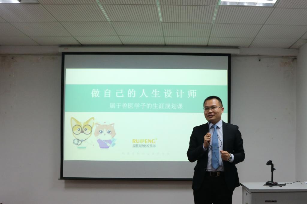 紧接着,李鹏为学员们带来了训练营第一课《做自己的人生设计师》,从宠物行业目前的机遇和挑战、新瑞鹏集团的宠物产业布局、动物医院人才培养探索实践、宠物行业职业规划设计建议四个方面,详细介绍了行业发展现状、对人才的要求和需求,及职业规划的相关方法。李鹏指出,规划是一个聚沙成塔的过程,需通过完成一个个短期目标以最终实现长期目标。在行业人才供需结构矛盾突出的当下,职业规划尤为重要。机会总是留给有准备的人,现在的规划与准备能够使未来择业拥有更多的选择,希望同学们从现在开始努力,成功将必定属于同学们。