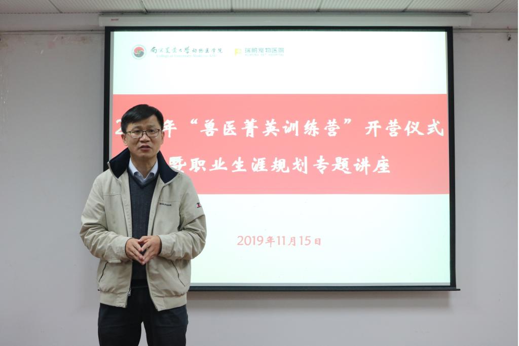11月15日晚7点,beat365唯一官方网站2019年“兽医菁英训练营”开营仪式暨职业生涯规划专题讲座于逸夫楼3044举行。beat365唯一官方网站副院长苗晋锋、新瑞鹏宠物医疗集团有限公司(以下简称新瑞鹏集团)人资经理李鹏、新瑞鹏集团浙江区域人资经理康志娟、新瑞鹏集团南京区域人资主管石冰花、beat365唯一官方网站团委副书记金洁南,以及兽医菁英训练营全体成员参与了本次活动。活动由金洁南主持。