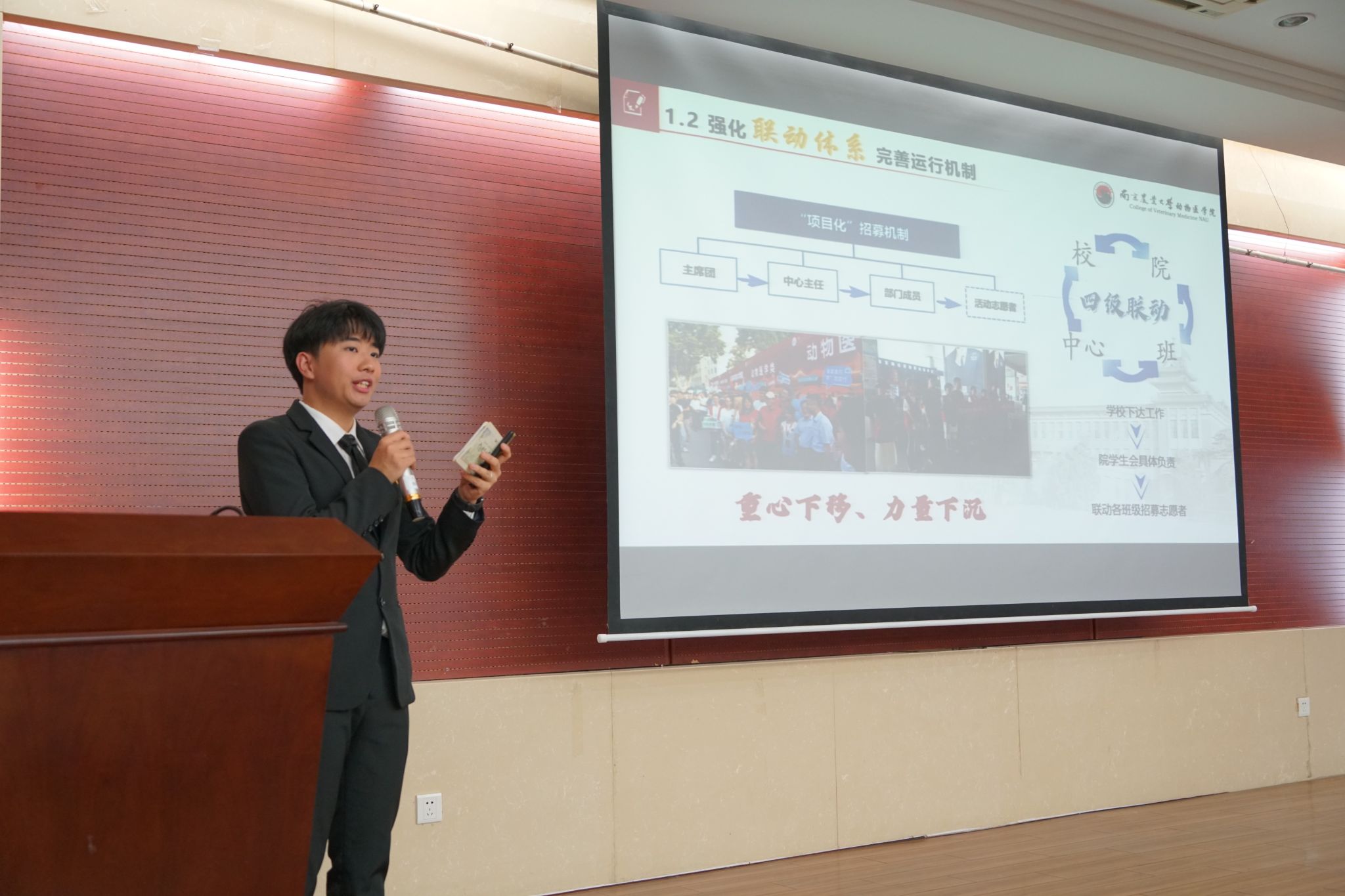 5月21日,动物医学院第二十四次学生代表大会顺利召开,院党委副书记李云锋,院学工办主任金洁南,本科生辅导员李欣欣、田文秀,学院第40届学生组织负责人和各年级学生代表出席本次会议。大会由学院第40届学生会执行主席王心如主持。