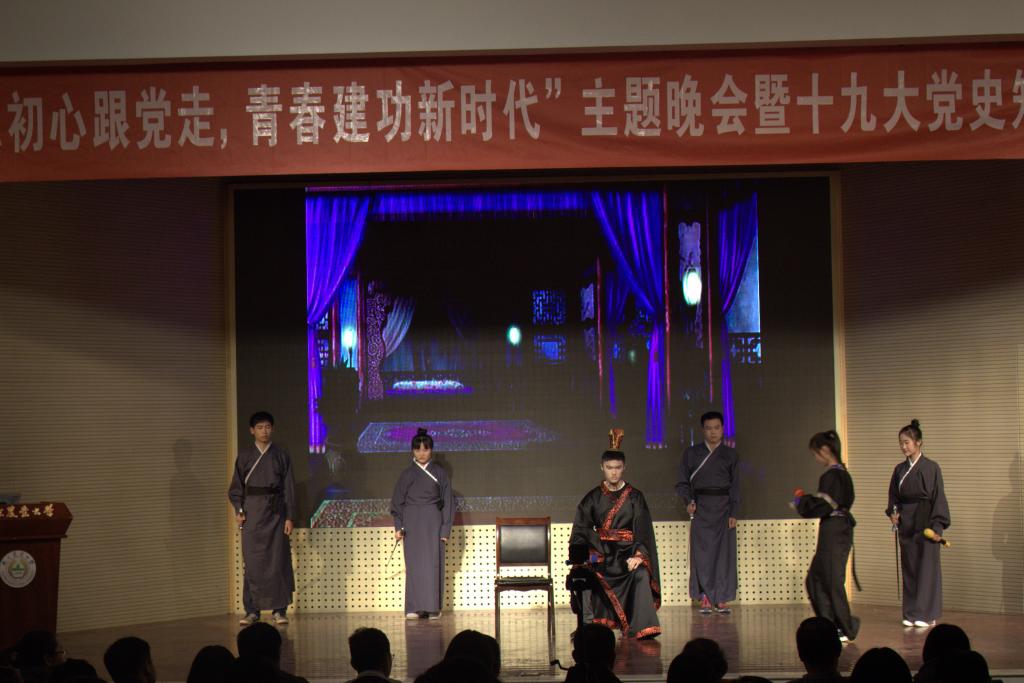活动进入第二环节,各代表队派出一名参赛队员进行主题演讲,各位评委对参赛人员进行了点评和提问,各位队员富有感染力的演讲深深感动了在场观众。此外,动药171班带来表演《不入虎穴 焉得虎子》,扣人心弦的情节使得观众评委都深深的被沉浸其中。最后一个附加分表演是动强171班带来的《红色的我们》,气势磅礴的合唱更是让人印象深刻。