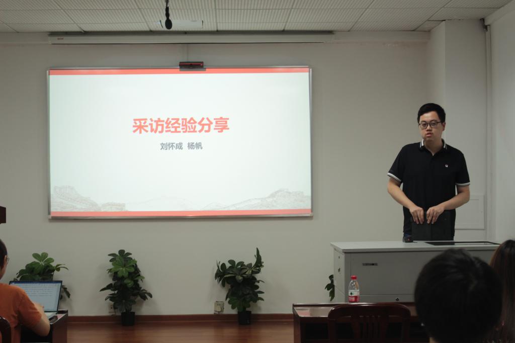 紧接着,王欣艺从确定采访对象,进行采访分组等9个方面介绍了“时光里的教材”故事挖掘的具体流程及注意事项。“口述历史”项目成员刘怀成、杨帆做采访经验分享,刘怀成分享了其采访祝寿康教授的经历,重点讲述了图片拍摄与素材留取的过程;杨帆分享了其采访胡元亮和宋大鲁老师的经历,通过两次采访经历的对比,重点讲述了采访提纲针对性拟定的方法。
