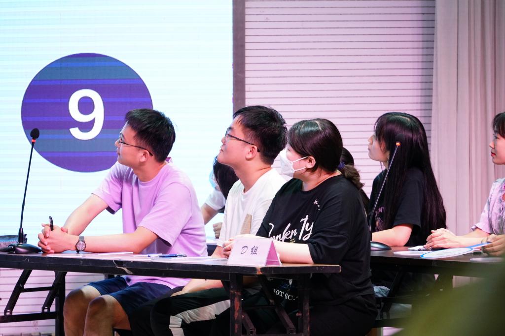 本次比赛分为五个环节:车轮战环节,抢答题环节,观众互动环节,讲演题环节以及淘汰赛环节。车轮战环节中七个小组依次答题,回答迅速且准确;抢答题环节中,选手们快速思考并作答,出现有争议的题目时,评委老师做出了详细的解答;中场休息的观众互动环节,同学们根据视频内容回答相关的问题,缓解了比赛现场的紧张氛围,在拓展生化常识的同时获得了精美小礼品。休息过后,比赛进入讲演题环节,各组分别派出选手上台进行生化反应相关的讲演,结合写在黑板上的流程图,讲演过程条理清晰。评委老师随后对各组进行了鼓励点评,并指出了各组的不足之处。