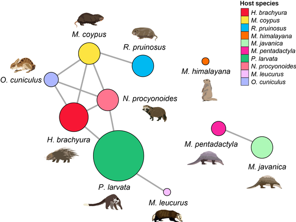 图3:野生动物携带潜在人畜共患病病毒与宿主之间的关联分析