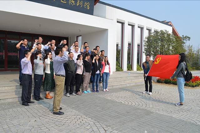 此外,在沈浩先进事迹陈列馆前,全体党员在党旗面前进行了宣誓活动。