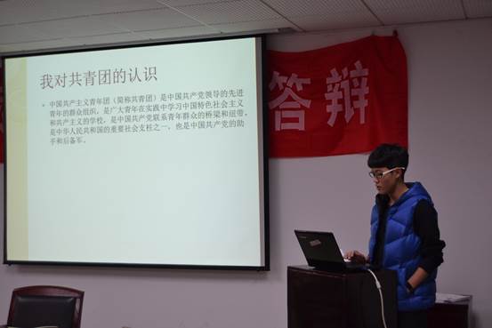 在答辩过程中,三位答辩选手自我阐述了入团原因,他们认为共青团是中国共产党领导的先进青年的群众组织,加入共青团能更好的理解中国共产党的党章,接受中共领导,提升自己的思想觉悟和积极性,成为一个对社会有贡献的青年。之后由评委分别对答辩选手进行提问,选手们根据自己的准备回答了问题。经过激烈的角逐之后,评委们根据各位选手的表现打分,最后选出唯一一名团员。
