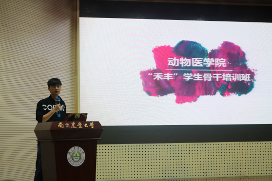 刘怀成发言,简要表述自己对学生干部的见解,并介绍学生骨干培训的主要内容和意义,也表达对同学们能够通过此培训班,学习到实用技能的希望。
