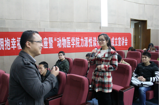 然后力源集团黄大鹏为同学们做了一场精彩的主题讲座,采用贴近生活的例子引入了本次活动“改变自己,拥抱幸福”的主题,在与同学们有趣的现场互动中提出了对同学们如何改变现状,拥有更好自己的几点建议。同时为到场学生提供了 “21天打卡”“60天打卡”“101天”等多阶段读书打卡计划,旨在让大家养成读书的良好习惯。