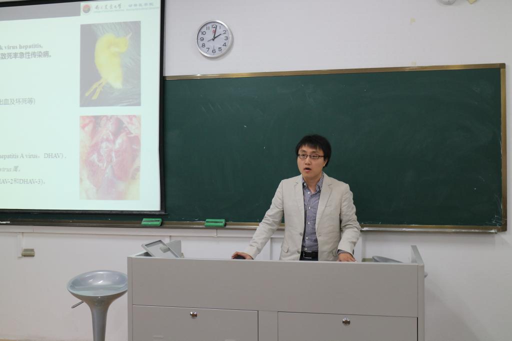 本次论坛的第一位演讲人是博士生熊文,他的研究内容是《淫羊藿苷及其磷酸化修饰物抗鸭病毒性肝炎作用与机理研究》,通过磷酸化修饰淫羊藿苷(ICA),对PICA进行前期药物筛选以及体内外实验来研究其直接与间接抗病毒作用,得出结果:磷酸化修饰后的淫羊藿苷的抗病毒能力优于被修饰前,进一步展现了化学结构修饰在提高天然产物活性方面的巨大潜力。演讲表现得体,逻辑清晰。
