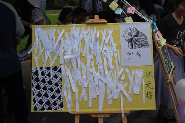 beat365官网力源悦读俱乐部开辟了“状元榜”和“告白墙”两个展区。“状元榜”上挂满了印有难易不同的题目的纸条,前来参加活动的同学们只要从中随机抽取一题回答即可。回答正确则可盖上动医院印章;如回答错误,那就进入下一环节“告白墙”。“告白墙”环节中,同学们在便利贴上写下自己想说的话或者读书体悟,并通过麦克风勇敢大胆地念出来,同样可获得动医院印章。本次活动的开展,寓教于乐。将文学常识问题融入游戏之中,当我们在进行游戏时,同样丰富了我们的知识,一举两得。