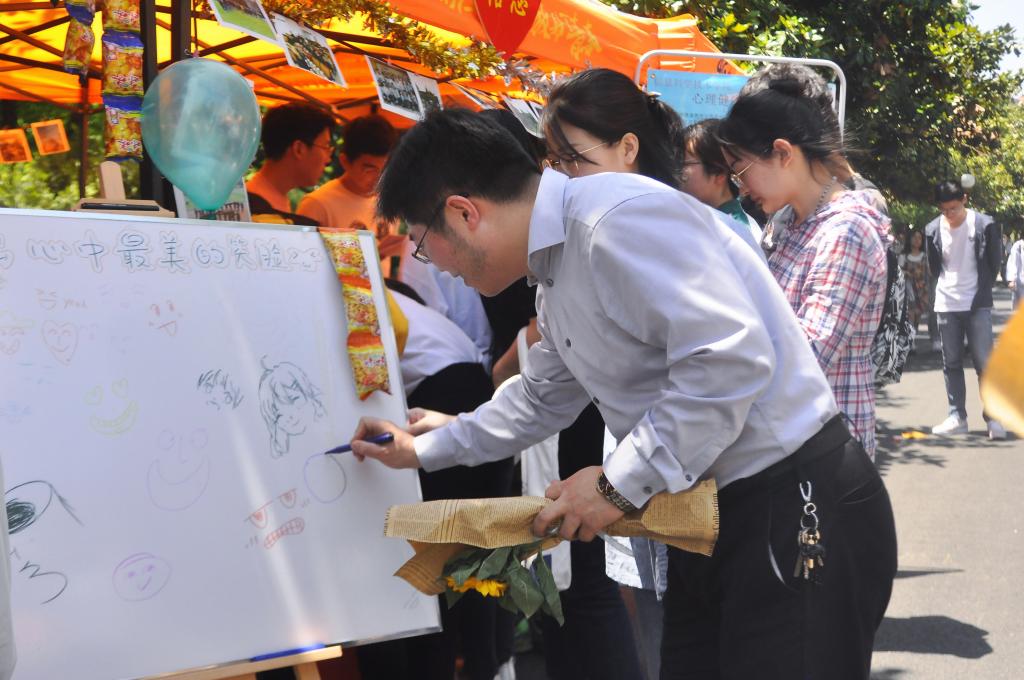 在各院展示区域,beat365官网准备了“你来比划,我来猜”、“画出心中最美的笑脸”、“传递一句温暖的话”三个小游戏。