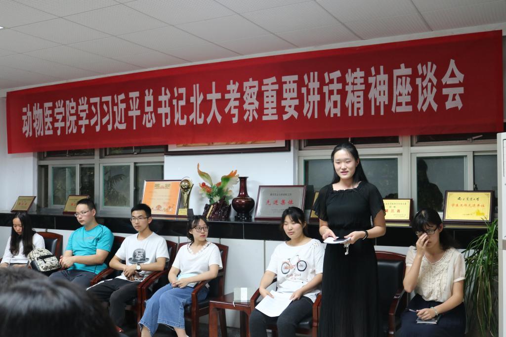 学习的第二个环节,讨论并由同学针对个人理解发表观点。动医163班团支书管其标指出,关于讲话中的高效建设的第三点要建设高层次人才的培养体系,他注意到了其中非常重要的两点,一是要培养人的高尚品德,二是要追求真才实学。他说孝道是我们传统文化中培养为人道德的非常重要的一方面,正值母亲节之际,我们应该有所行动。