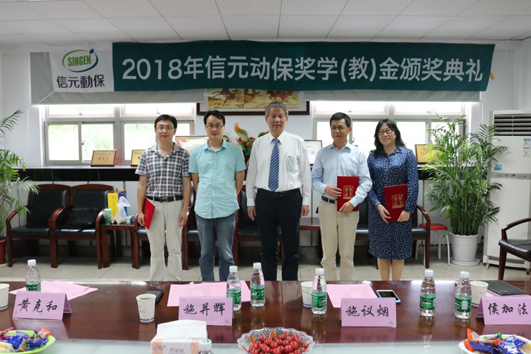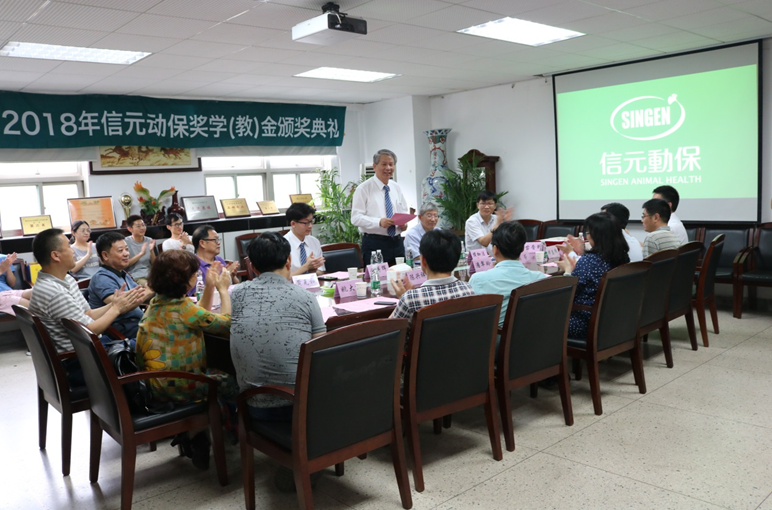 仪式开始后,首先由钟佩真女士先介绍了信元动物保健股份有限公司的历史文化,再由信元动物保健股份有限公司董事长施议烟先生发言、宣读或获奖决定并为获奖教师颁奖,接着由施并辉先生为获奖学生颁奖。