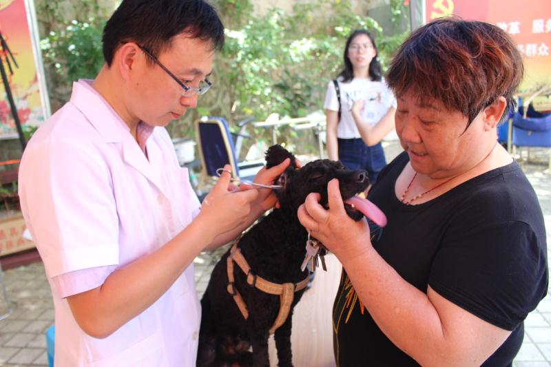过程中,不少宠物被诊断出牙结石、腹泻、皮肤病等疾病,宠物义诊小分队在邓益锋老师的帮助下,一一为它们提供了诊疗建议;姚大伟老师现场授课,向爱宠人士详细讲解了毛发梳理、掏耳屎、挤肛门腺、修剪指甲等宠物护理、美容技巧,做好日常的卫生工作,防范寄生虫威胁。
