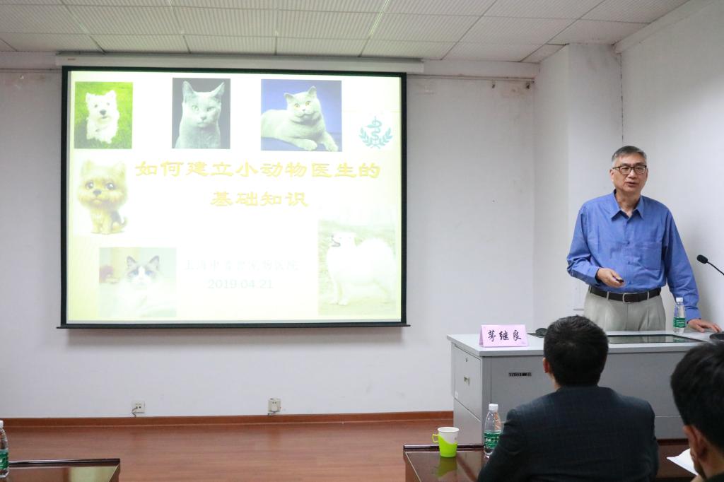 活动伊始,熊富强讲述了“兽医开讲了”系列活动的重要意义,并对茅继良教授进行了详尽介绍,随后茅继良教授就“如何建立小动物医生的基础知识”进行了具体阐述。