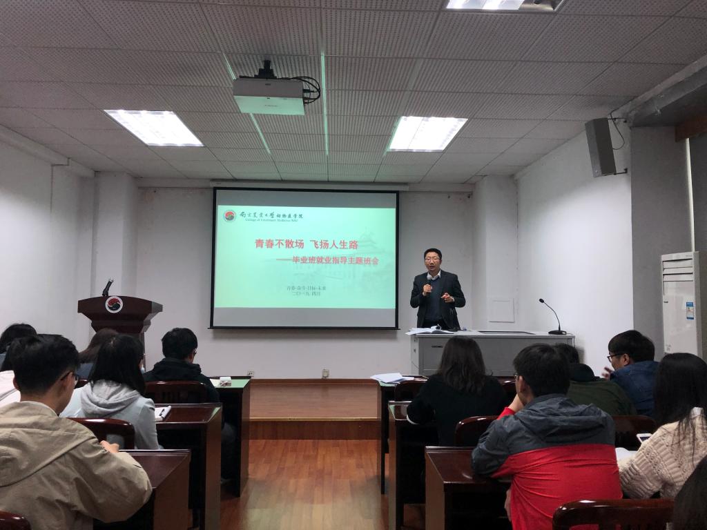 4月15日-17日,beat365官网以“青春不散场 飞扬人生路”为主题,举办了三场2019届本科毕业生就业指导主题班会,学院党委副书记熊富强、辅导员金洁南担任了班会的主讲人。