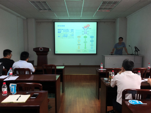 第四位是博士生陈静龙,他的汇报题目是《应激影响GPR120功能及其机制的研究》。主要内容是研究应激影响GPR120功能及其机制,汇报内容十分精彩。