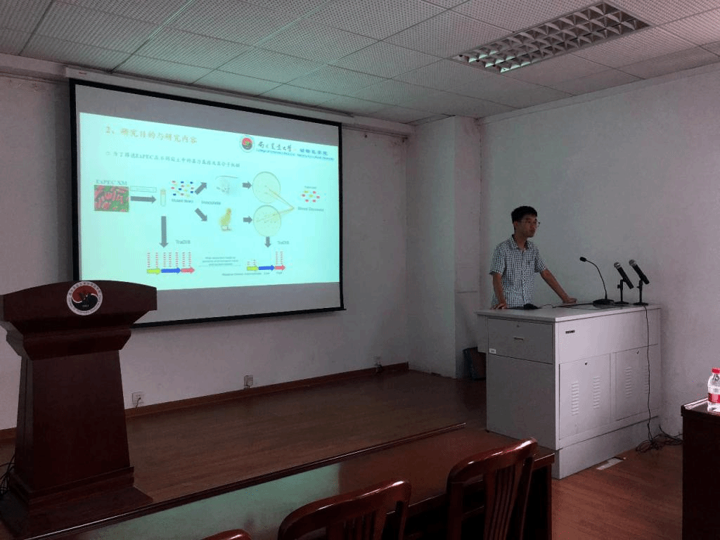 首先,博士生张皓博以《肠外致病性大肠杆菌(ExPEC)宿主适应性的分子机制》为题进行汇报,主要目的为筛选ExPEC在不同宿主中的毒力基因及分子机制,主持人及评委老师对此进行了精彩点评,报告内容十分精彩。