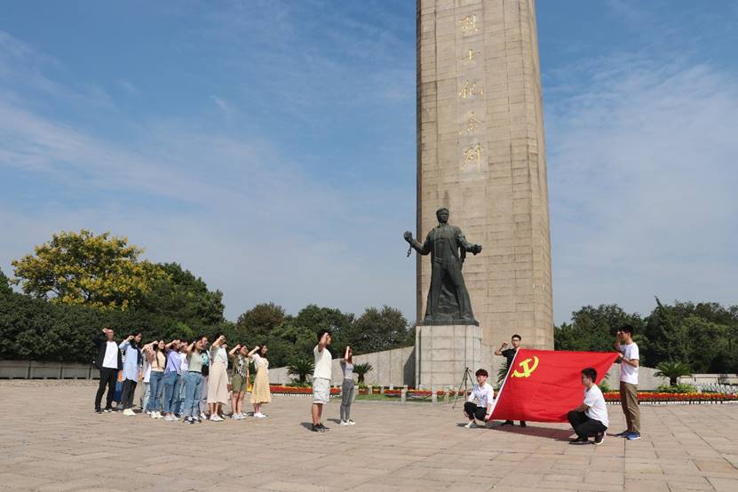 宣誓完毕后,大家依次缓步上前,向雨花台烈士纪念碑敬献鲜花并绕行瞻仰纪念碑,回顾革命前辈的艰苦奋斗,表达深切缅怀和无限敬仰。