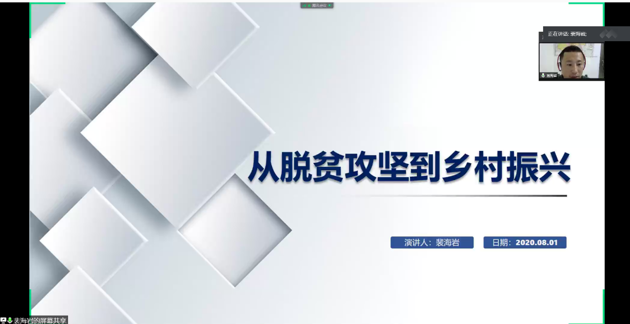 首先,任职贵州省麻江县金竹街道河山村第一书记的裴海岩同志,进行了“从脱贫攻坚到乡村振兴”的主题报告。裴书记从党的脱贫攻坚的总方略讲起,介绍了河山村的人口数据、贫困数据等基本概况,详细介绍了党建扶贫、产业扶贫、智力扶贫、教育扶贫等多措并举、综合施策的脱贫攻坚战略,结合裴书记自身的工作经历及beat365唯一官方网站对麻江县的定点结对帮扶工作,为同学们讲解了脱贫攻坚、乡村振兴的基本阶段与工作内容。