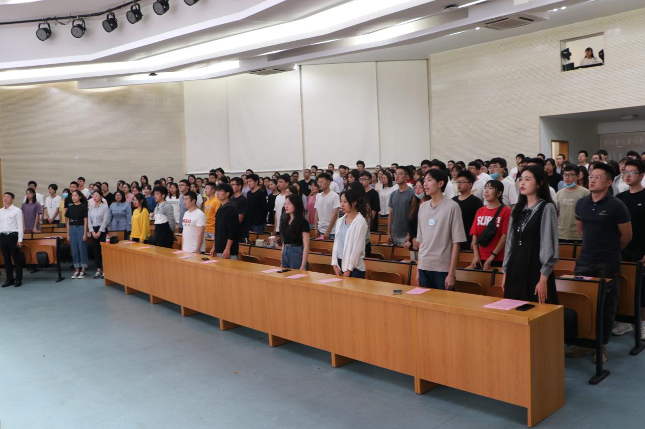 新生全体起立并庄严宣誓:我将运用所学的兽医科学知识和技能,遵守兽医职业道德标准,严格自律,服务社会,为保护动物健康和福利,保障人类动物性食品安全,维护动物与人类健康,推动兽医卫生事业发展而奋斗终生。