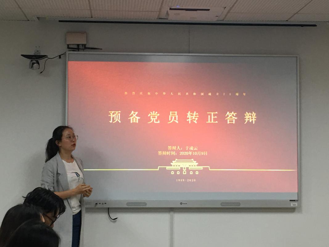随后,进行预备党员转正答辩。预备期满一年的七位党员分别从思想、学习、生活、工作等方面进行了转正答辩,汇报了自己在预备期的表现,支部成员进行了提问答辩,详细了解他们预备期间的表现情况。经支部讨论,投票表决,一致同意通过于凌云、杨依晨等7名同志的转正答辩。