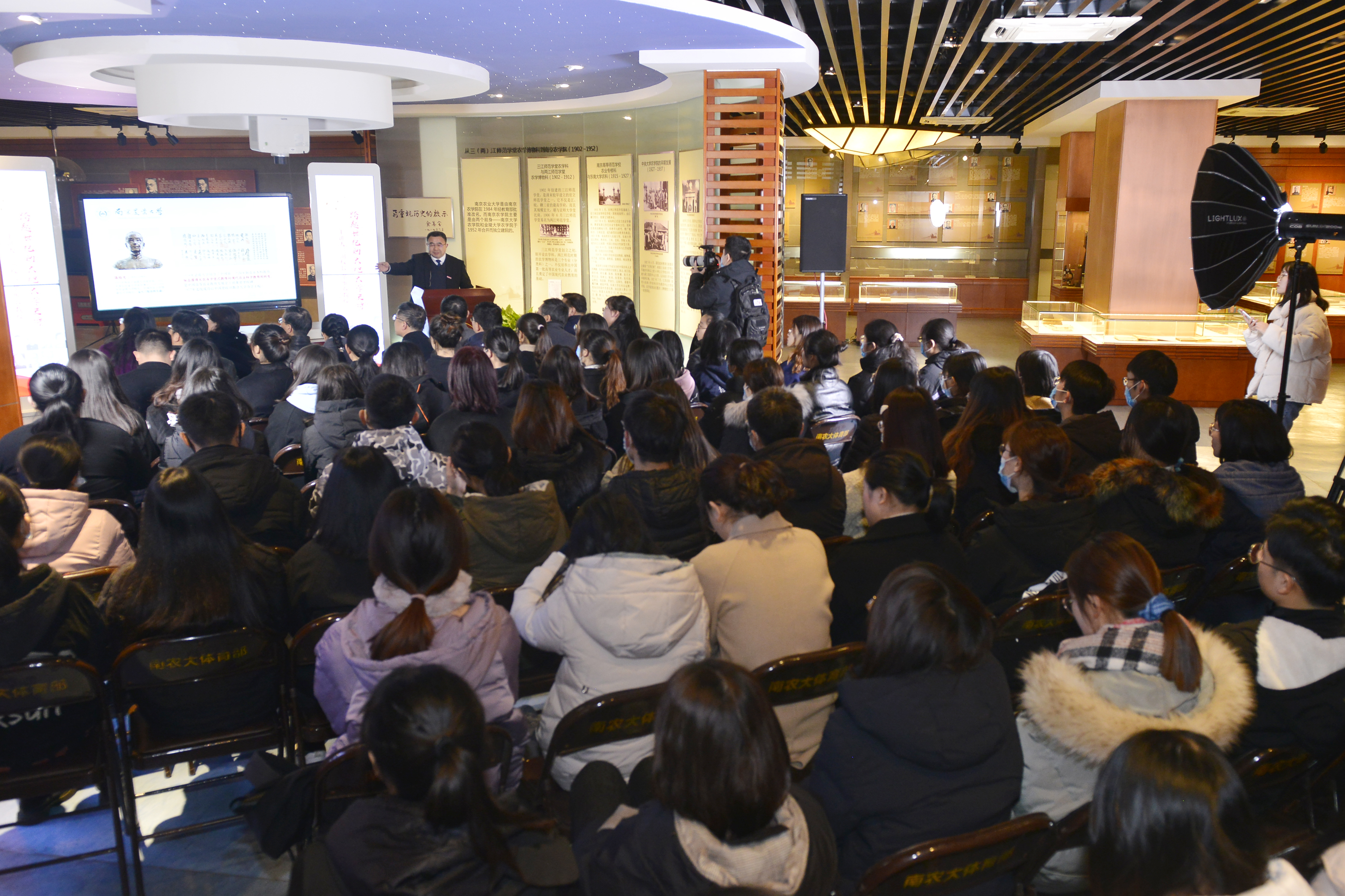 董维春结合中国高等农业教育发展从“星火篇”、“燎原篇”和“发展篇”介绍了南农前世今生的发展史和先辈们的奋斗故事,他表示,希望南农青年学子一是要以学农感到自豪,有关注苍生的使命和热情。二是要秉承百年南农“诚朴勤仁”的校训,为国家的粮食安全、生态文明做出贡献。三是要肩负使命,努力学习,勤于思考,勇于实践,在双一流建设中勇于实践,为华夏农兴做出更大的贡献。