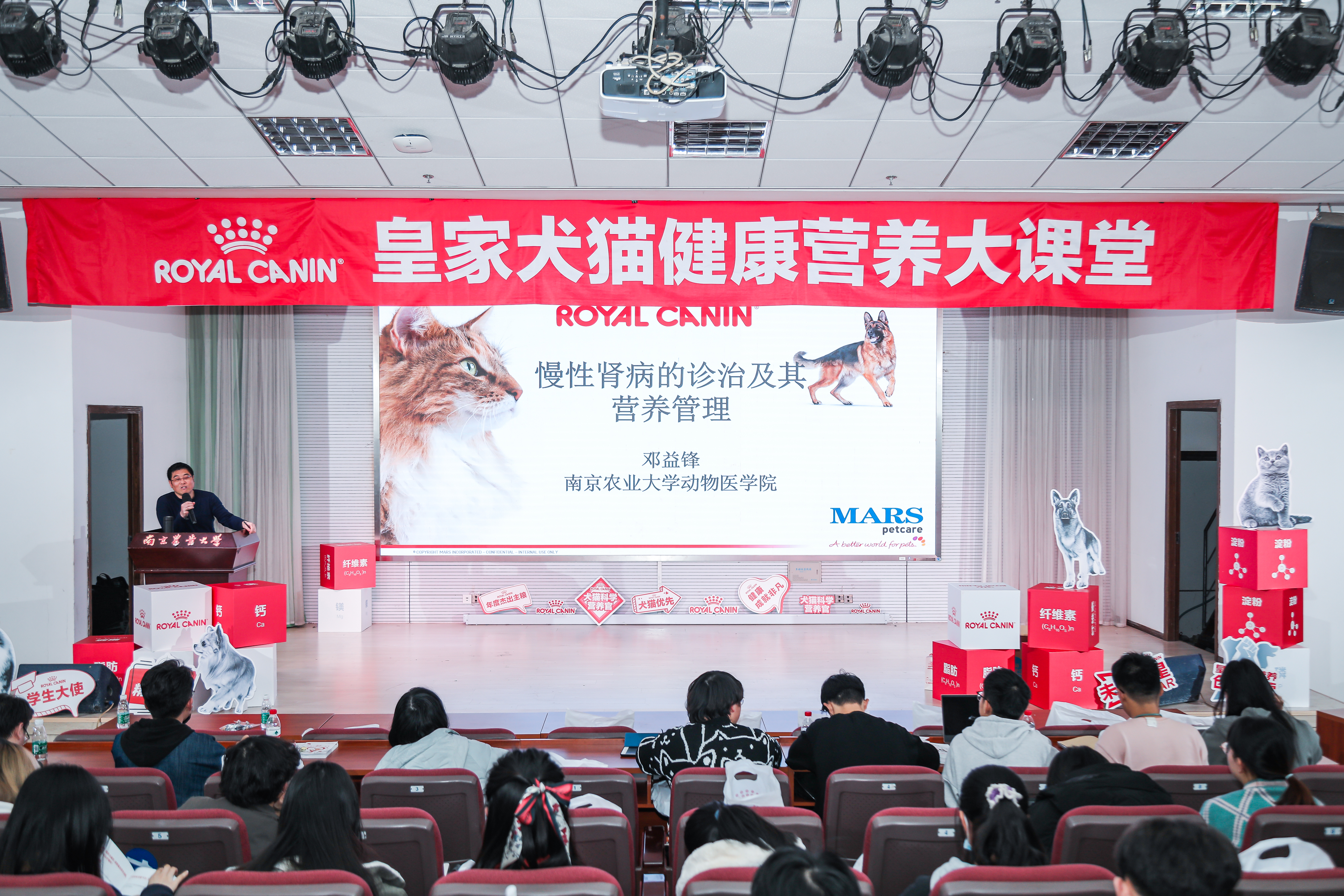 随着皇家宠物食品宣传视频的告一段落,此次皇家犬猫营养大课堂正式开始。曹瑞兵副院长在致辞中首先指出了促进同一个健康的发展是兽医的共同职责,校企合作是培养人才的关键一步,此次犬猫营养大课堂与皇家超级图书馆建立是beat365官网与家宠物食品有限公司建立长期合作的开始。