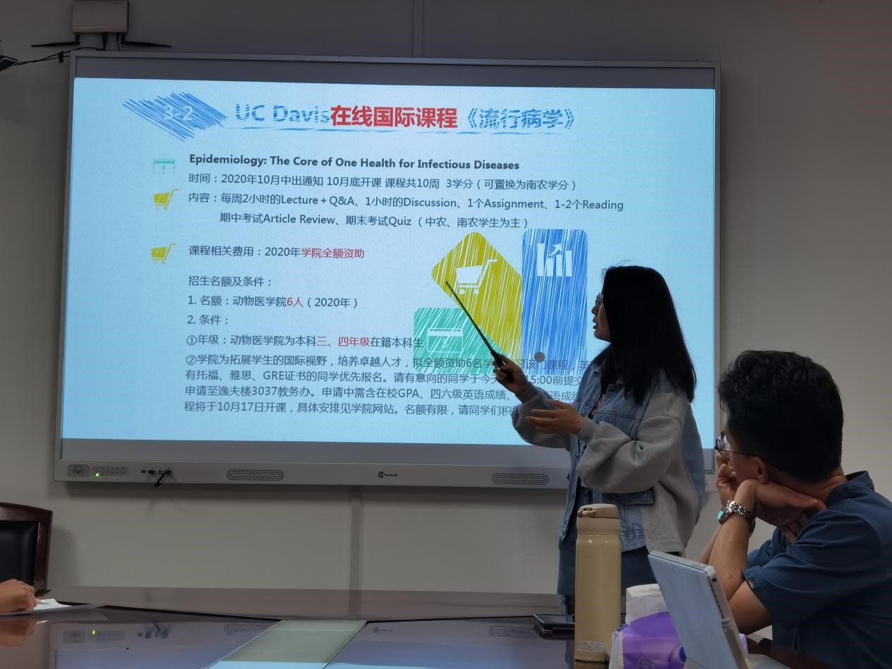 活动伊始,王思淇同学就美国加州大学戴维斯分校的基本情况、申请流程和具体要求和大家进行了分享。同时她分享了自己在大学四年期间如何找到自己兴趣所在的经历过程,为想要出国留学的同学提供了有用的建议。