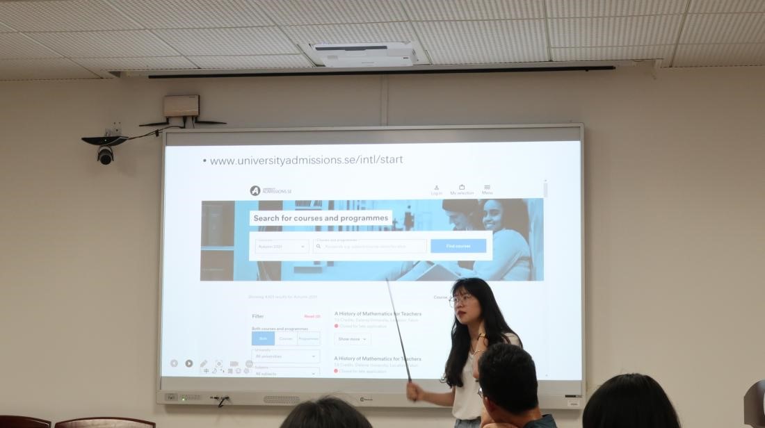 最后一位分享的是谷云菲同学,她先是介绍了自己的科研经历、实践经历,然后为大家详细介绍了申请欧陆学校的流程和需要准备的申请材料等。
