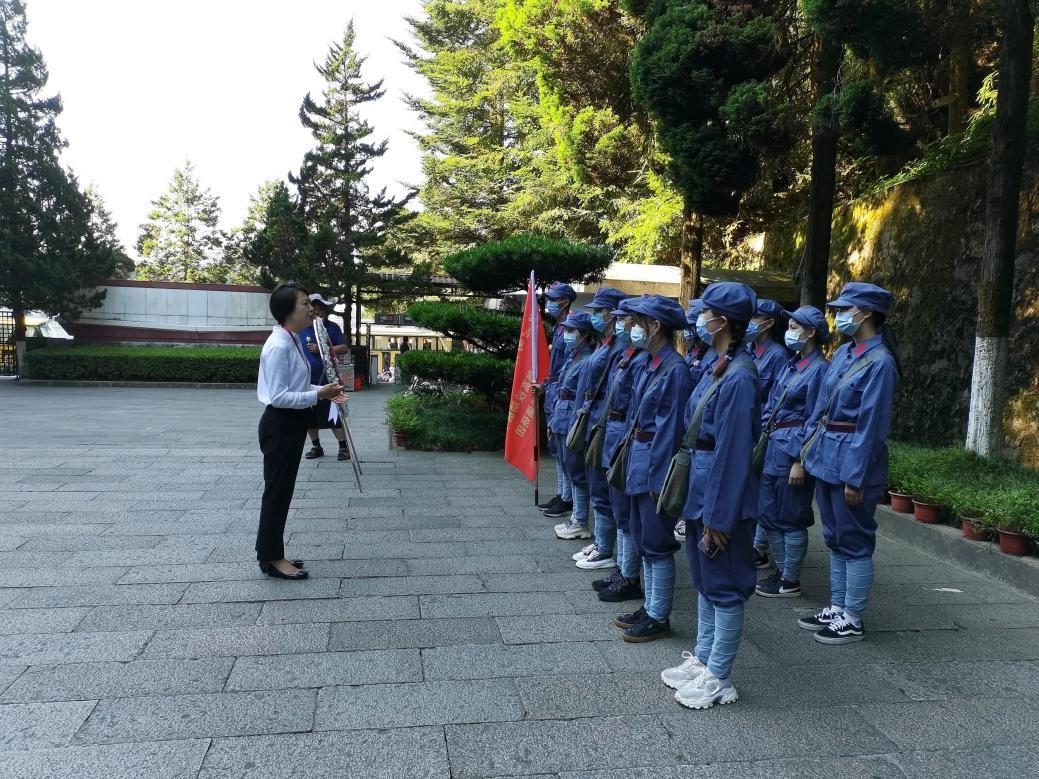 7月15日清晨,微风习习,同学们身着红军装,来到井冈山北山烈士陵园,缅怀先烈。现场的讲解老师通过讲述女红军战士——段子英,八年寻党路的故事和无数为国为民献身革命事业的来诠释我党“不忘初心,坚定理想信念”的精神。