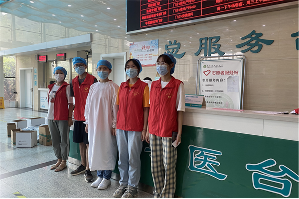 在医院二楼的导医台领取防护帽、志愿者服装后,同学们前往各自安排的楼层开始导诊服务。签到挂号、寻找科室、打印发票……在志愿者的引导下,一切变得有条不紊。