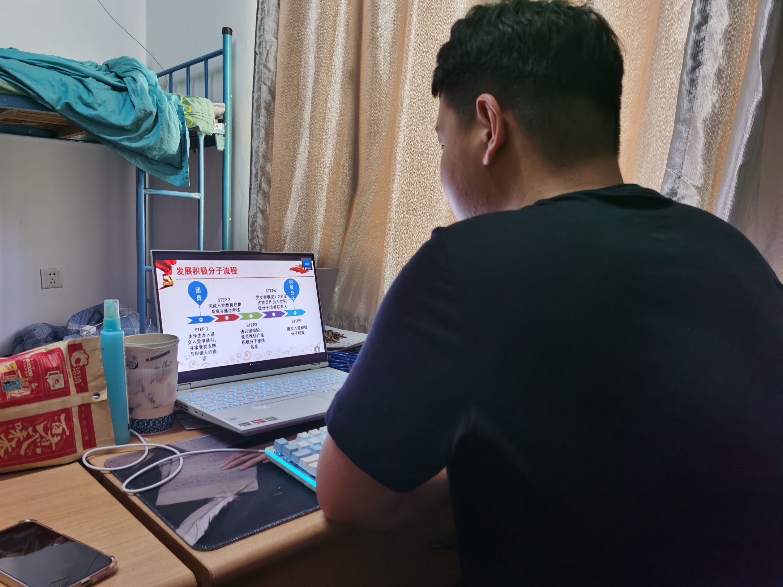 升旗仪式结束后,各班级通过“腾讯会议”线上平台,有序开展《我为什么加入中国共产党》专题讲座,讲座由各班级下班党员主讲。结合中国共产党百年发展历程,下班党员们用丰富的理论、生动的案例、切身的经历,向2021级新生分享了自身的入党动机,阐述了中国共产党员的初心和使命,加强了同学们对中国共产党的认知和理解。动医类2103班下班党员马舒啸表示:讲座中,我结合自身步入大学以来的所思、所想、所悟,分享了选择加入中国共产党的心路历程,希望能鼓励和引导新生主动思考历史赋予我们的责任和使命,这也是我作为一名共产党员应尽的责任和义务。