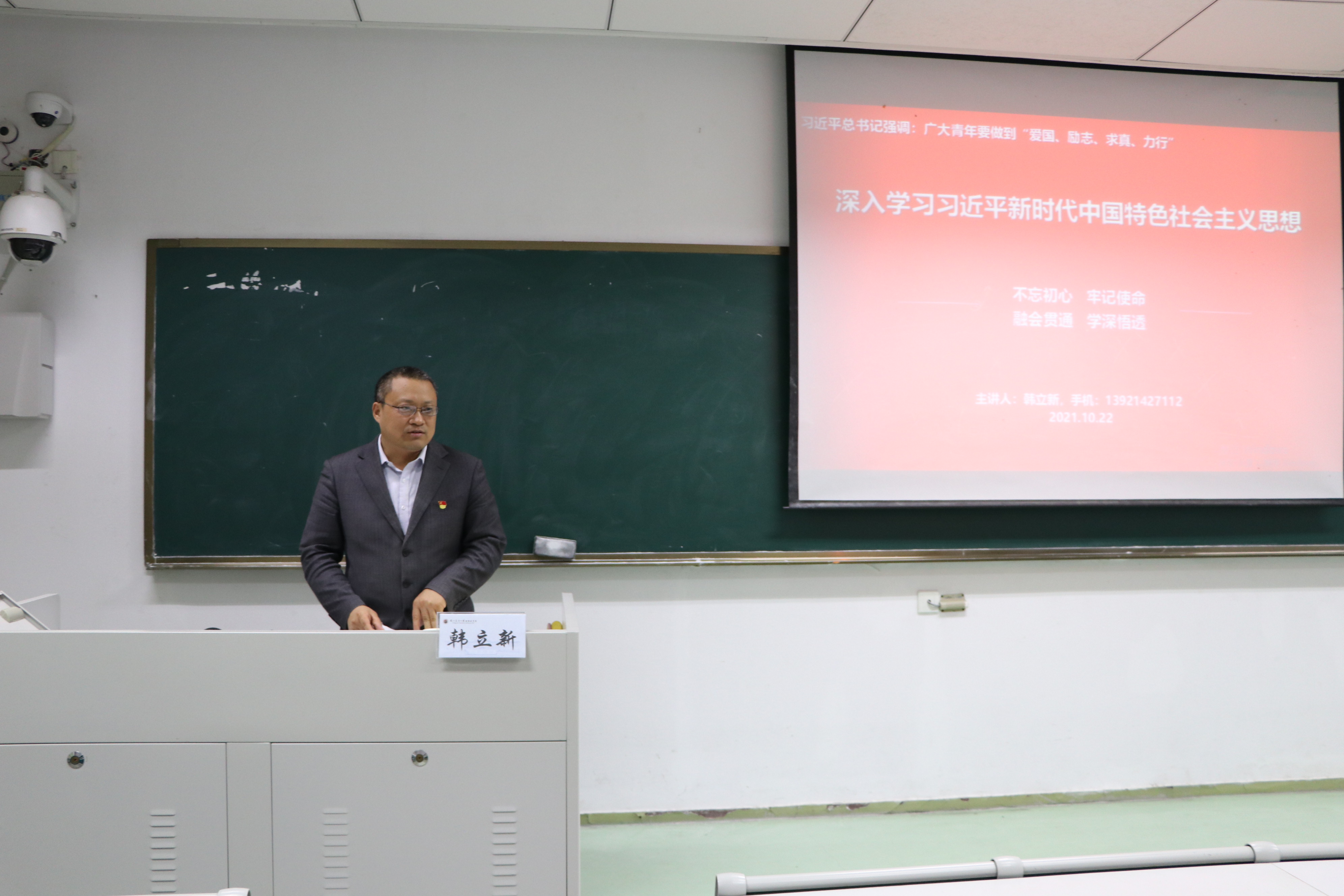 10月22日下午6:00,beat365官网在主楼107教室举行了“新时代的召唤”入党积极分子的线下实践教学活动,主讲人为外国语学院党委副书记韩立新。报告由beat365唯一官方网站党委副书记刘照云主持,beat365唯一官方网站2021年秋季全体新发展入党积极分子到场参会。