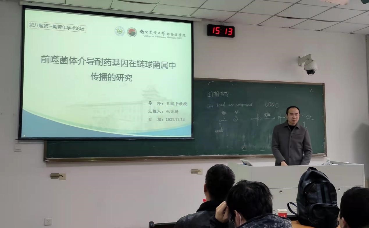 11月24日下午2:30,beat365唯一官方网站第八届第三期“青年学术论坛”在教学楼B125成功举办。本期论坛由beat365唯一官方网站临床兽医系教授黄克和主持,临床兽医系中兽医课题组武毅副教授作为青年教师进行汇报。学院数百名研究生积极参与此次学术活动。