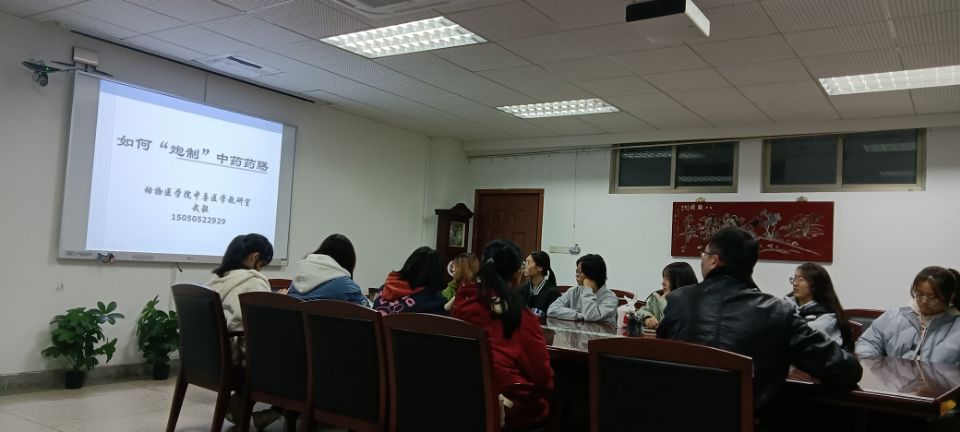 武毅副教授围绕“中药炮制课,帮我学会烧药膳”主题,以四种食物引出主题“中药炮制”、“药膳”,详细介绍了中药、中药炮制、药膳、药用植物、中药饮片、中药制剂等概念。以制备六味地黄丸为例,向同学们解释了药用植物、中药饮片和中药制剂的关系。重点介绍净制法、切制法、炮炙法等中药炮制技术,并结合炖、泡、煮、榨汁、炒、浸、蒸、炸等烹饪技巧,介绍了药膳制作的流程、特点和要求。