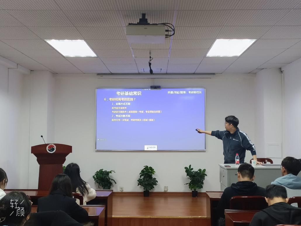 11月22日晚19:00,“生涯面对面第四期——考研形式分析与择校复习指导交流会”在逸夫楼3044圆满落下帷幕。此次活动我们邀请到了考研韩校长(南农校友、争流考研创始人兼南京分校校长、五维四段教学法创始人、全国知名考研名师)为我们主讲考研形势分析和择校复习指导。