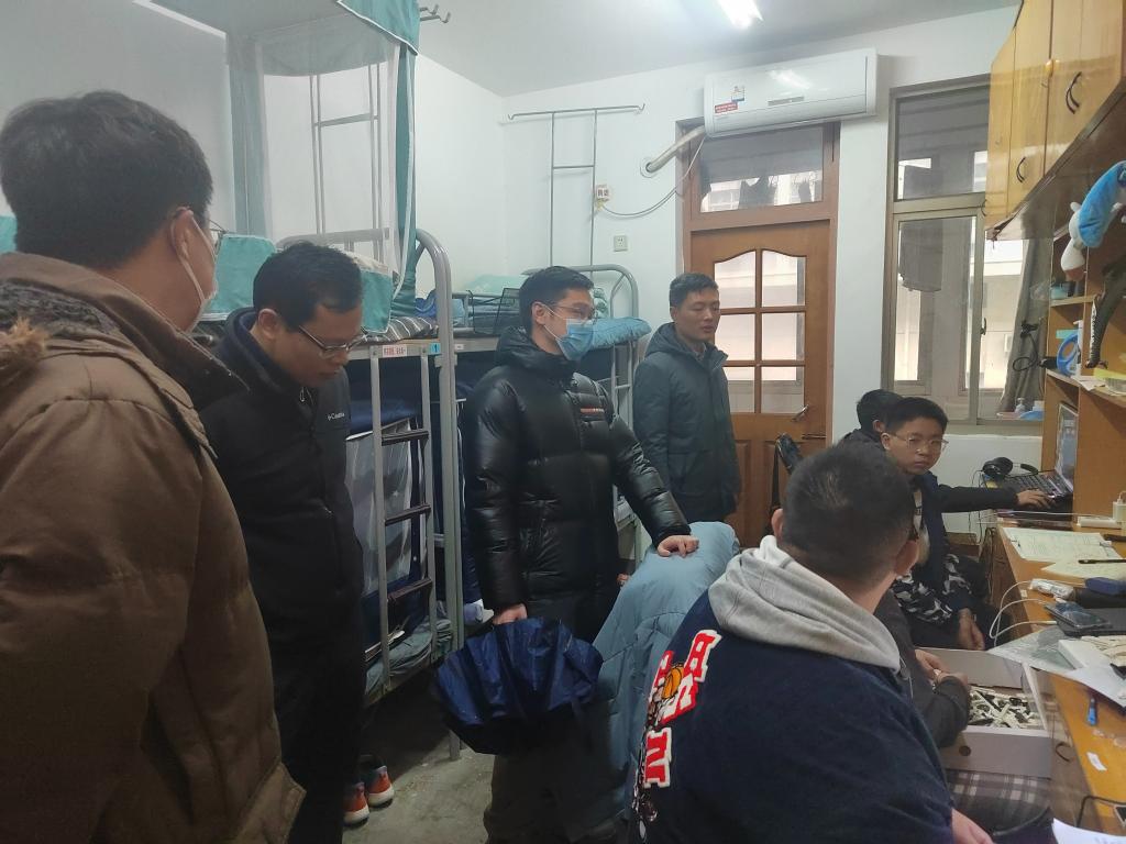 走访期间,党委副书记李云锋与同学们亲切交谈,一一询问了解寒假见闻、健康状态、返校感受、新学期目标等,鼓励同学们规律作息,注重身体健康,尽量减少校外流动,减少剧烈运动;尽快适应学习节奏,认真备考,全力以赴迎接即将到来的课程考试。班主任刘攻关、杨丹晨、武毅、于勇等,还对寝室安全隐患进行了排查,并进行安全宣传教育。