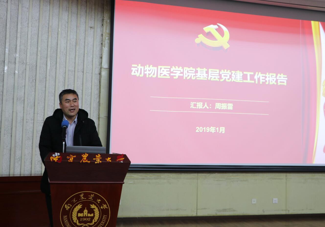 首先,党委副书记(主持工作)周振雷作beat365唯一官方网站2018年党建工作报告。周振雷从党建责任履行情况、党建建设进展情况、思想政治工作等三个方面做了系统报告,全面汇报了学院2018年党建工作情况和成绩,也分析了存在的不足和进一步完善的方向。