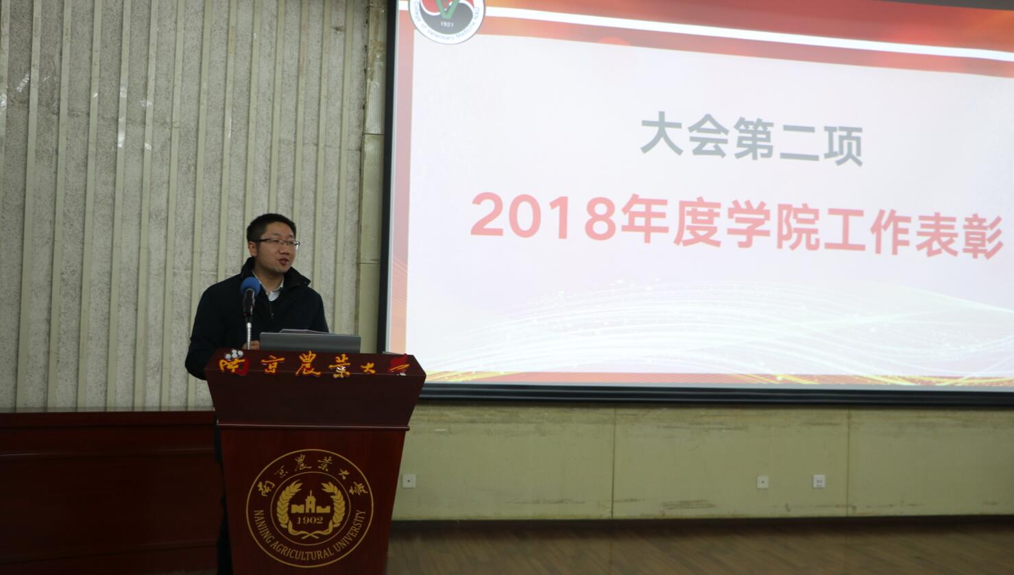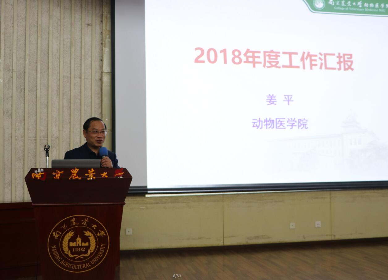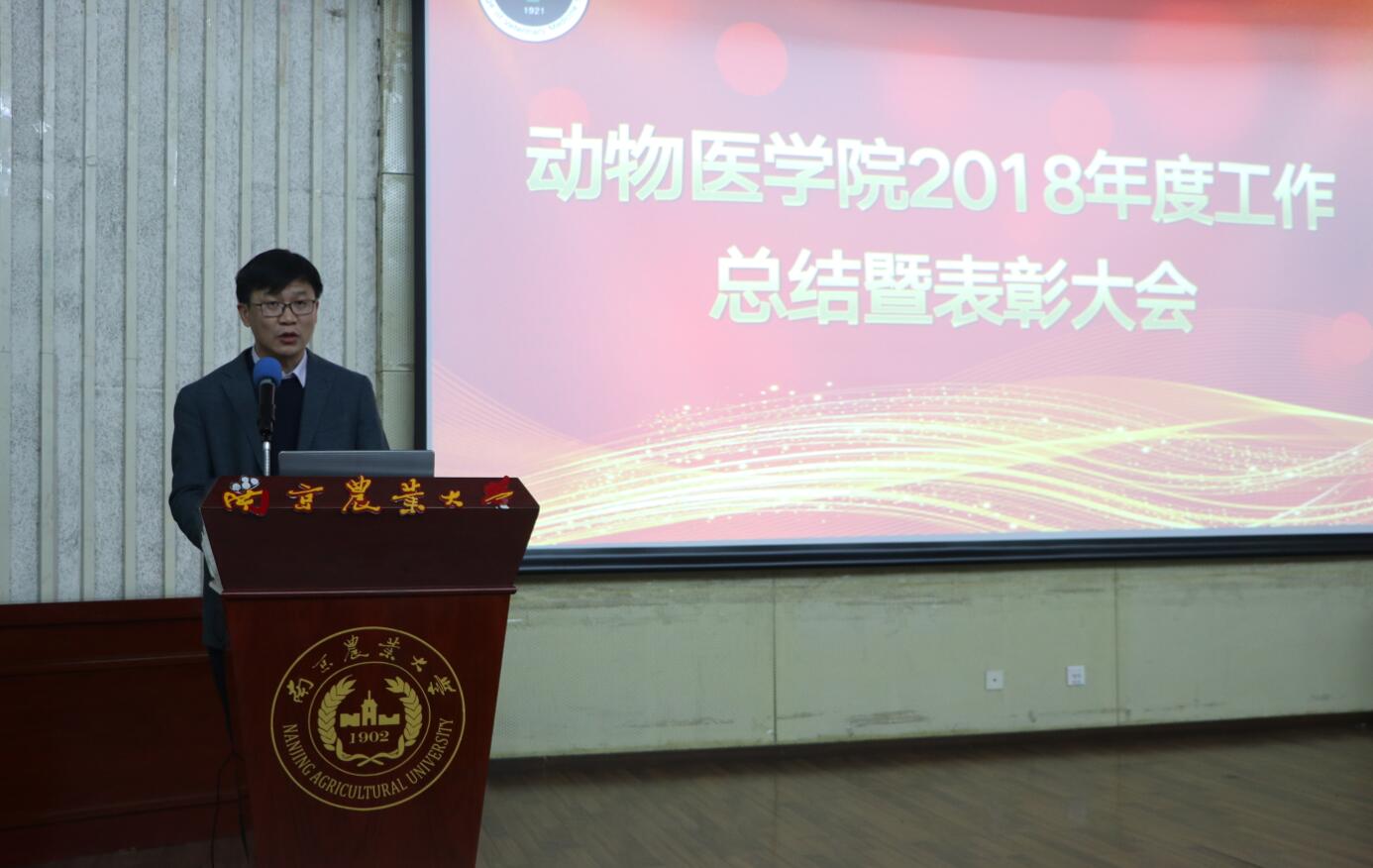 接着,院长姜平作了beat365唯一官方网站2018年度学院工作总结报告。姜平从优质资源建设、师资队伍建设、人才培养工作、科学研究工作、国际合作与交流等方面总结了2018年学院工作开展思路以及已经取得的一些工作成效,姜平2018年学院在新一届领导班子和全体教职工的共同努力下,尤其是在师资队伍建设、人才培养和科学研究等方面取得了显著成绩,成绩来之不易,在2019年,学院将继续围绕存在的问题制定兽医学科振兴计划,希望全院教职工凝心聚力,共同努力,不畏困难,全力推进兽医学科建设。
