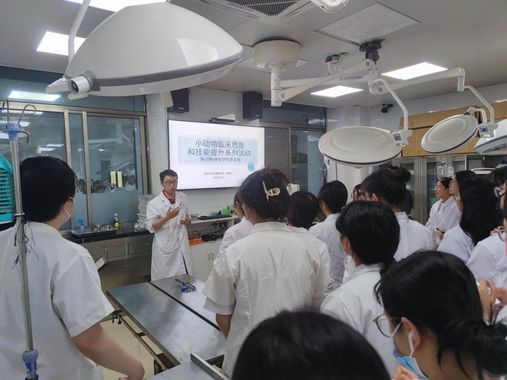 5月15日晚19:30,beat365官网“小动物医学临床思维和技能提升系列活动”第四期——神经学检查专题活动在教学动物医院101顺利举行。本次活动由beat365唯一官方网站临床系副教授陈凯文主讲,四十余名学生参与。