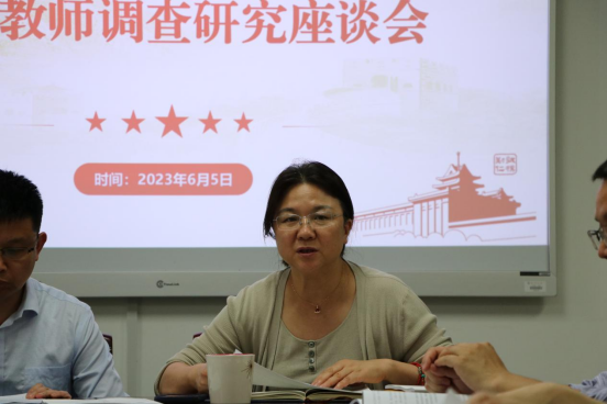 6月5日下午,beat365唯一官方网站举办学习贯彻习近平新时代中国特色社会主义思想主题教育青年教师调查研究座谈会,学院领导班子和13位青年教师代表到场参与,会议由院党委书记姜岩主持。
