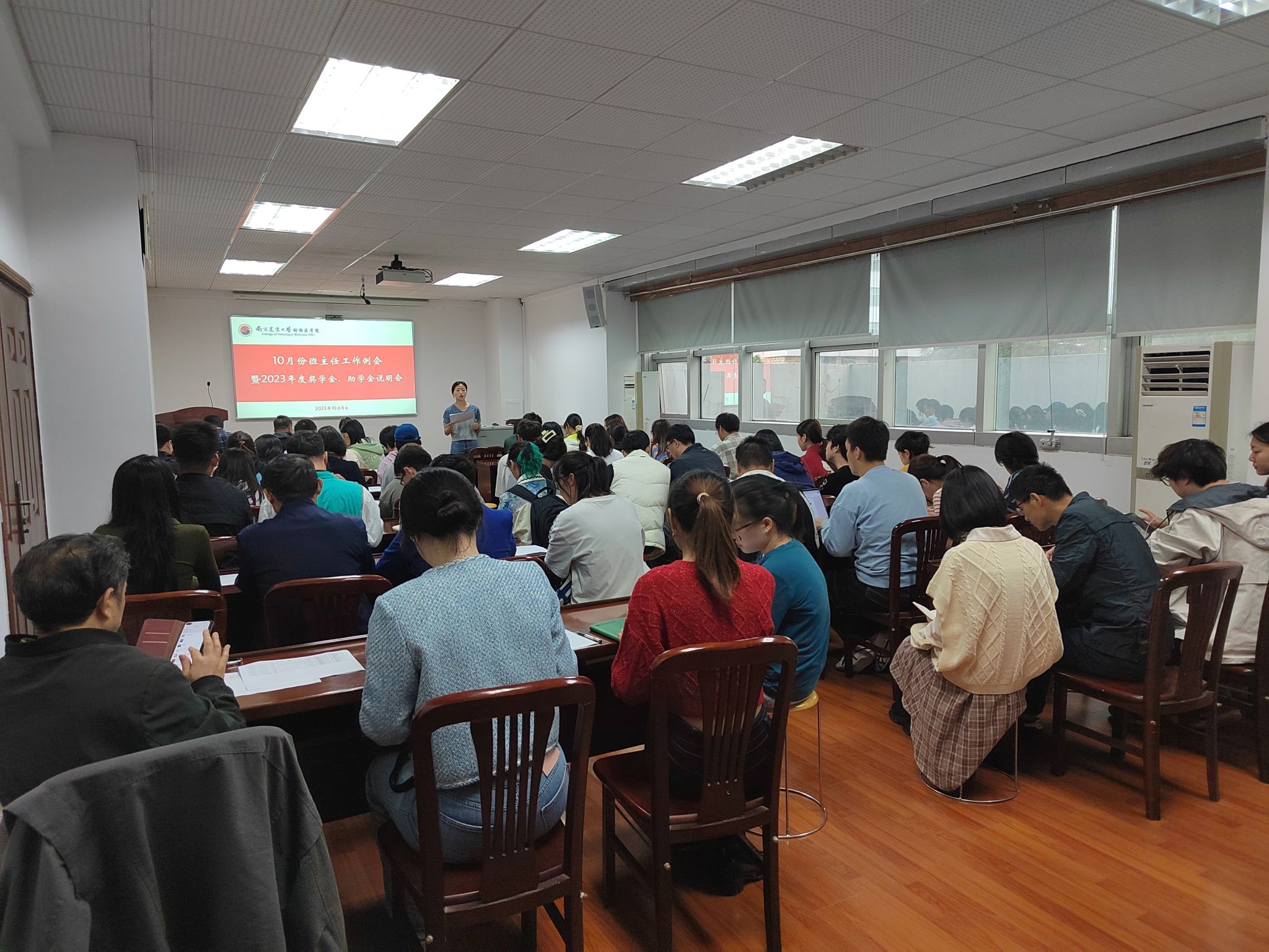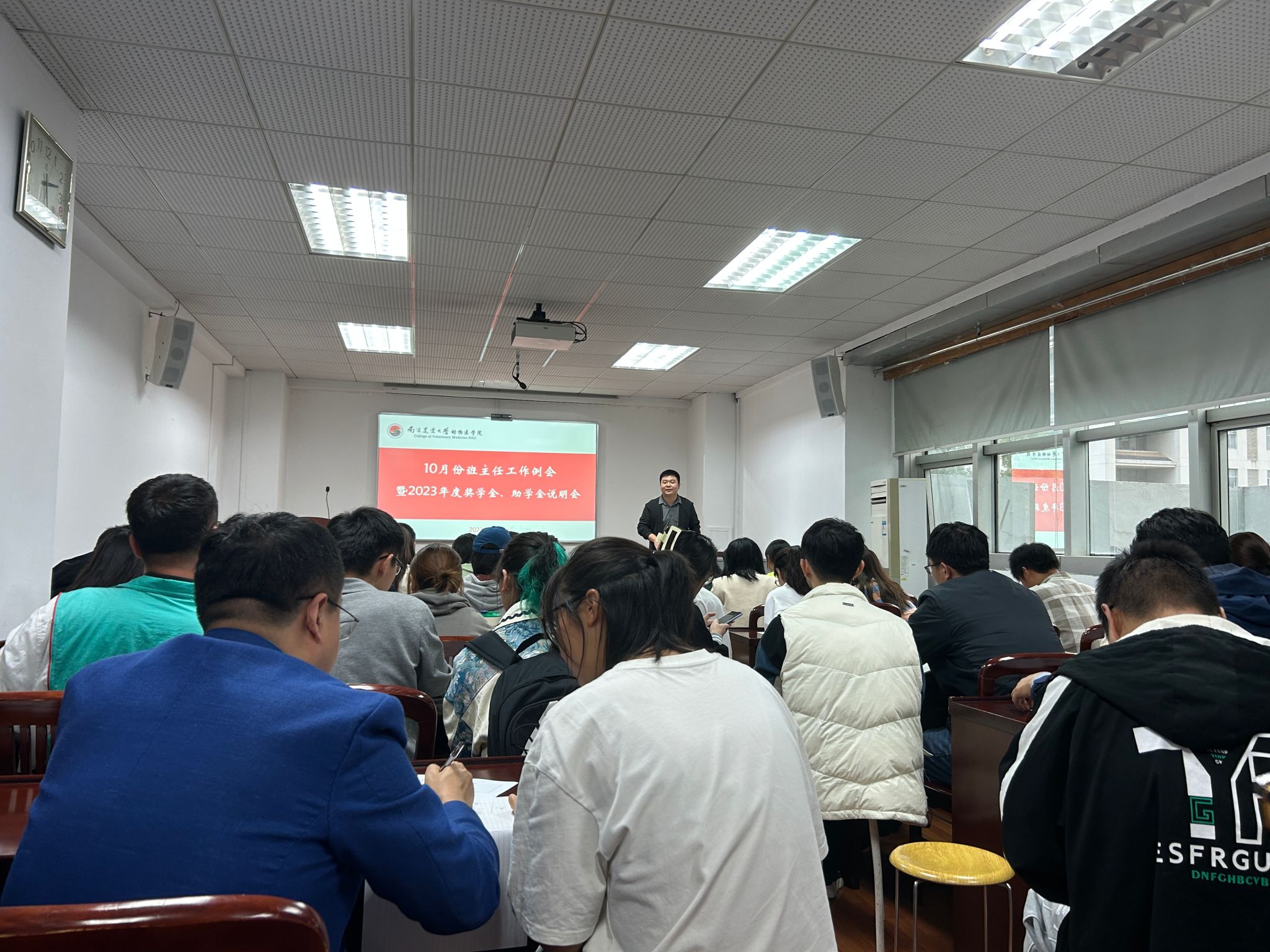 10月8日下午,beat365唯一官方网站10月份本科生班主任工作例会暨2023年度奖学金、助学金说明会在逸夫楼3044召开。学院35个班级班主任和班委到场参与,院党委副书记李云锋,辅导员徐刚、李欣欣参会。
