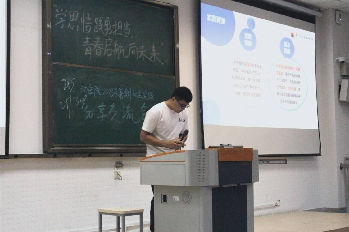 随后,学院校级、院级暑期社会实践重点团队代表成员9人,依次围绕项目设计、实施开展、项目成效、感悟思考四个方面展开分享。
